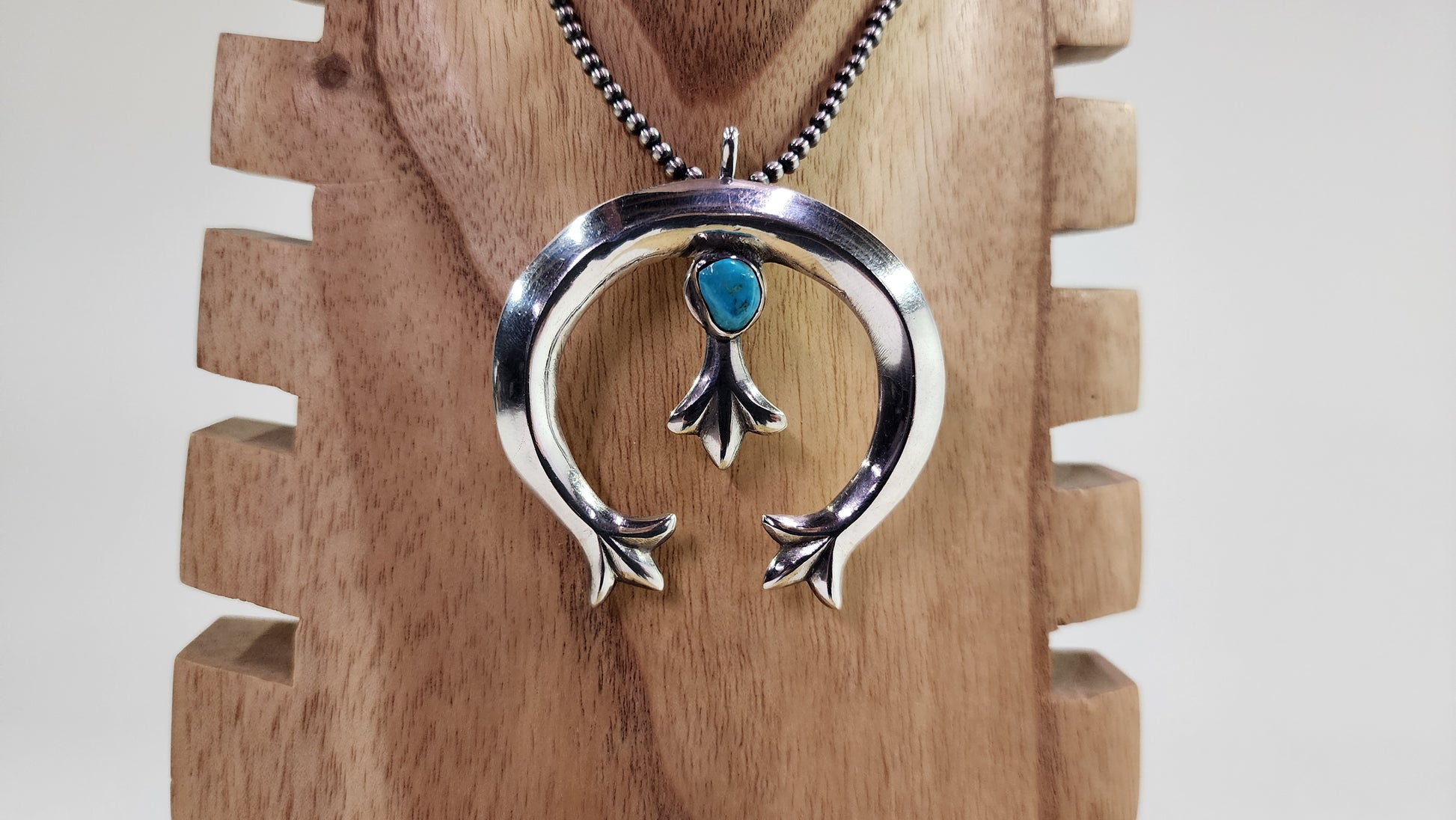 Large sterling silver and turquoise pendant. This is a beautiful, handcrafted pendant with open bail so you can place it on larger strands if you would like.